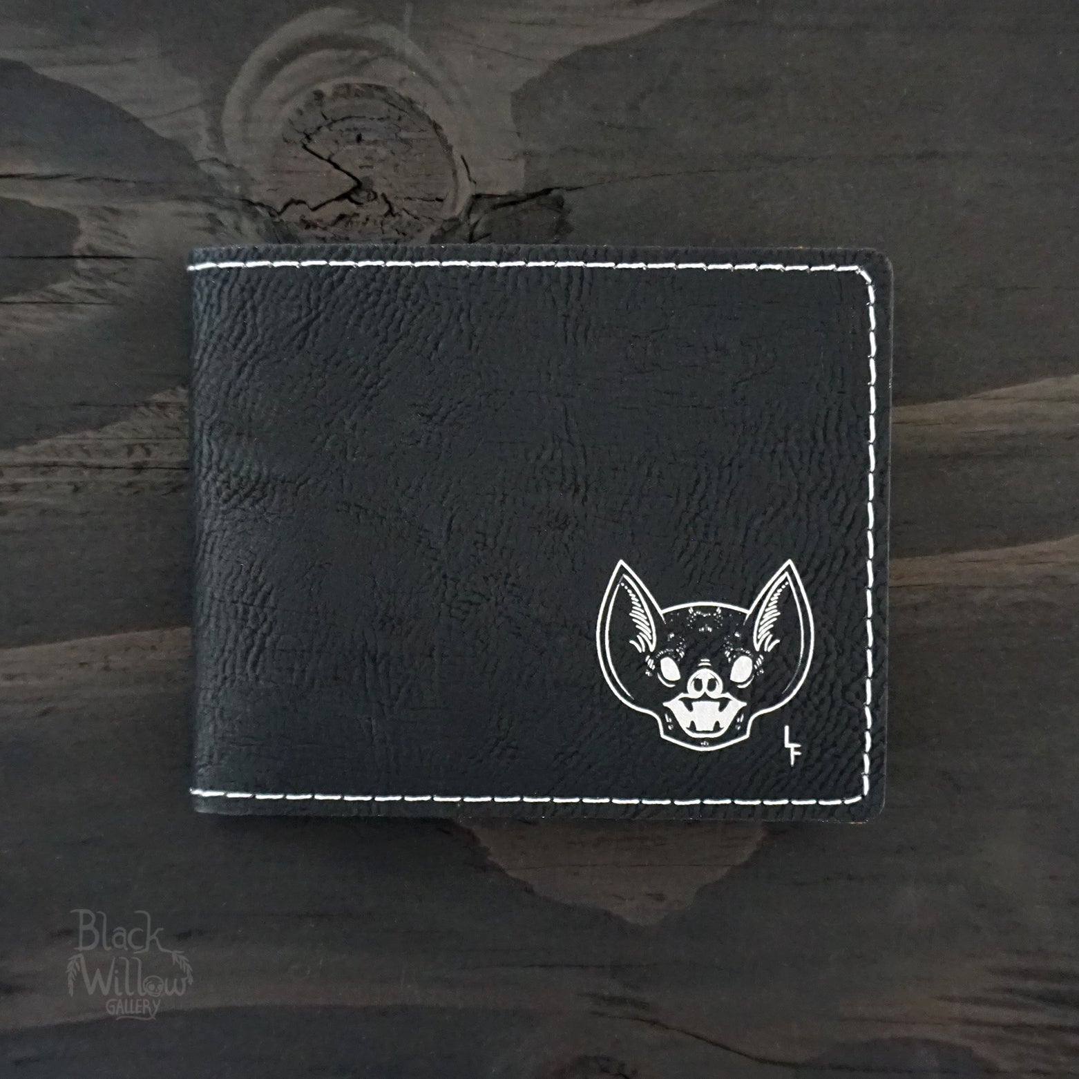 Crafted from cruelty-free faux leather, this bi-fold marvel is cloaked in an enigmatic black, providing the perfect canvas for our iconic screaming Bat, etched with a silver finish. Silver thread weaves through the folds, like moonlit tendrils in the darkness, adding an extra layer of spectral charm. Compact in size at 4.5" X 3.5". Maintenance is a breeze – simply wipe down with a damp cloth to keep this mysterious artifact in prime condition. Embrace the shadows with our vegan wallet, where the macabre meets the practical in a spine-chilling dance of style and substance.